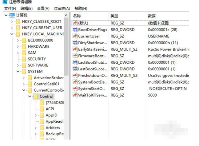 2、然后依次打开hkey_local_machine \ system \ currentcontrolset \ control,选中之后看看右侧是否有“storagedevicepolicies”,如果没有就需要新建。