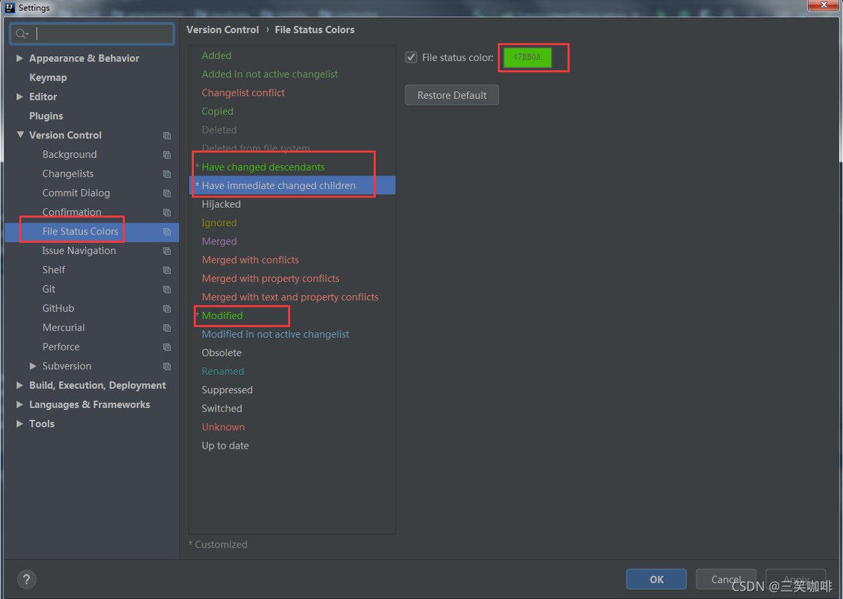 如上中间栏,设置:祖辈目录、当前父目录、修改后的文件等各情况下的颜色。其他的状态根据需要设置。