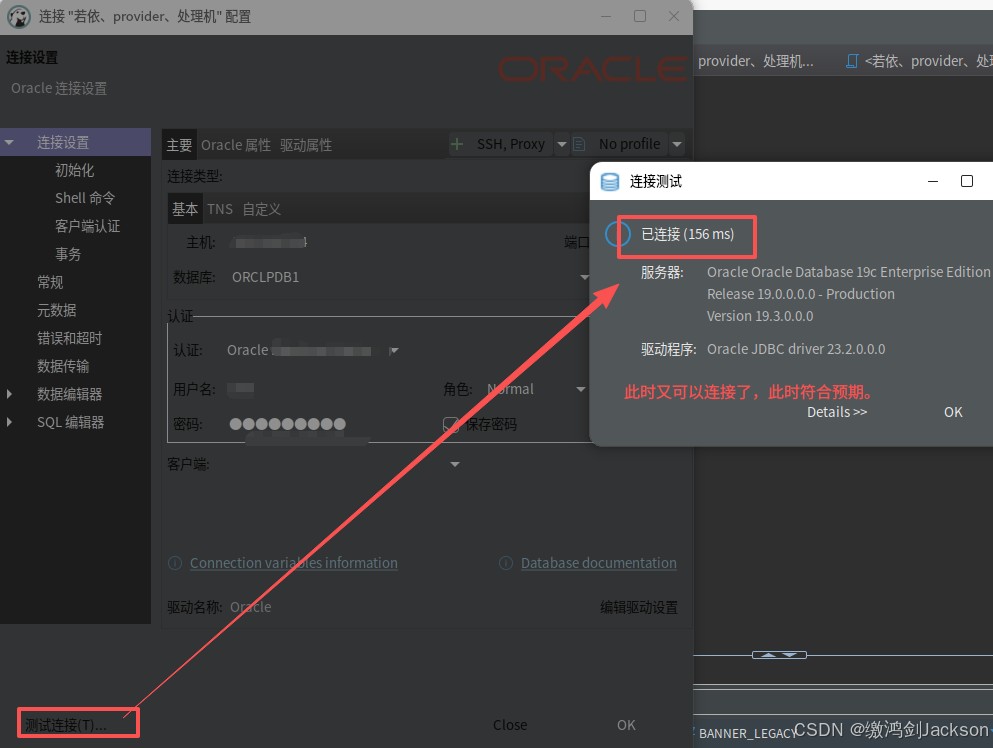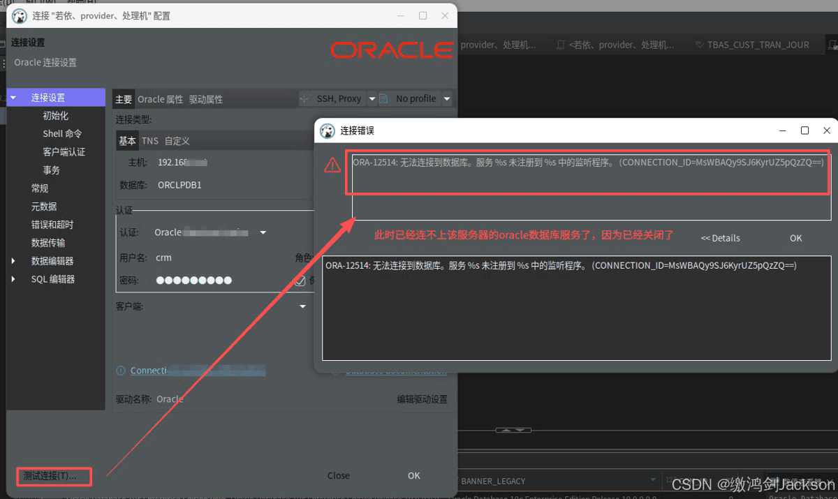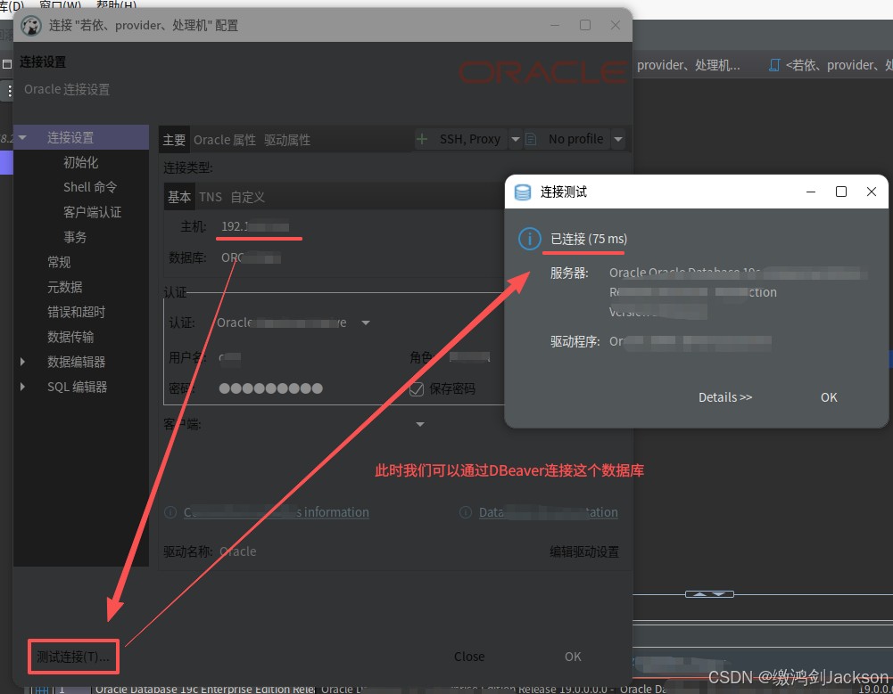 第七步:查看dbeaver是否可以连接这台服务器的oracle数据库服务