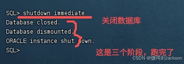 关闭流程:执行shutdown immediate命令,关闭oracle数据库。