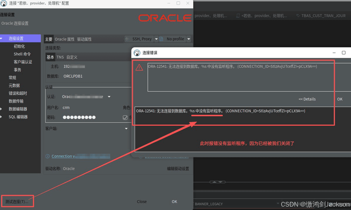 sqlplus user/pass@ip:port/service)监听器挂了:新远程连接失败,已连接的继续工作
