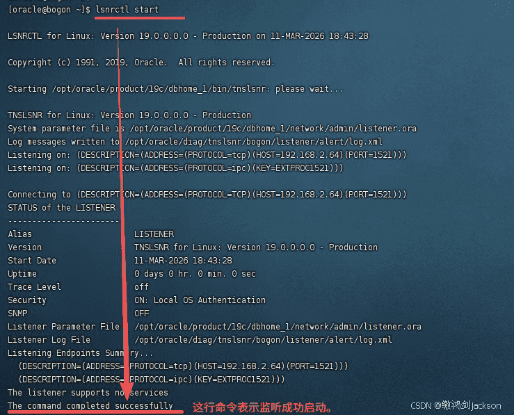 lsnrctl start