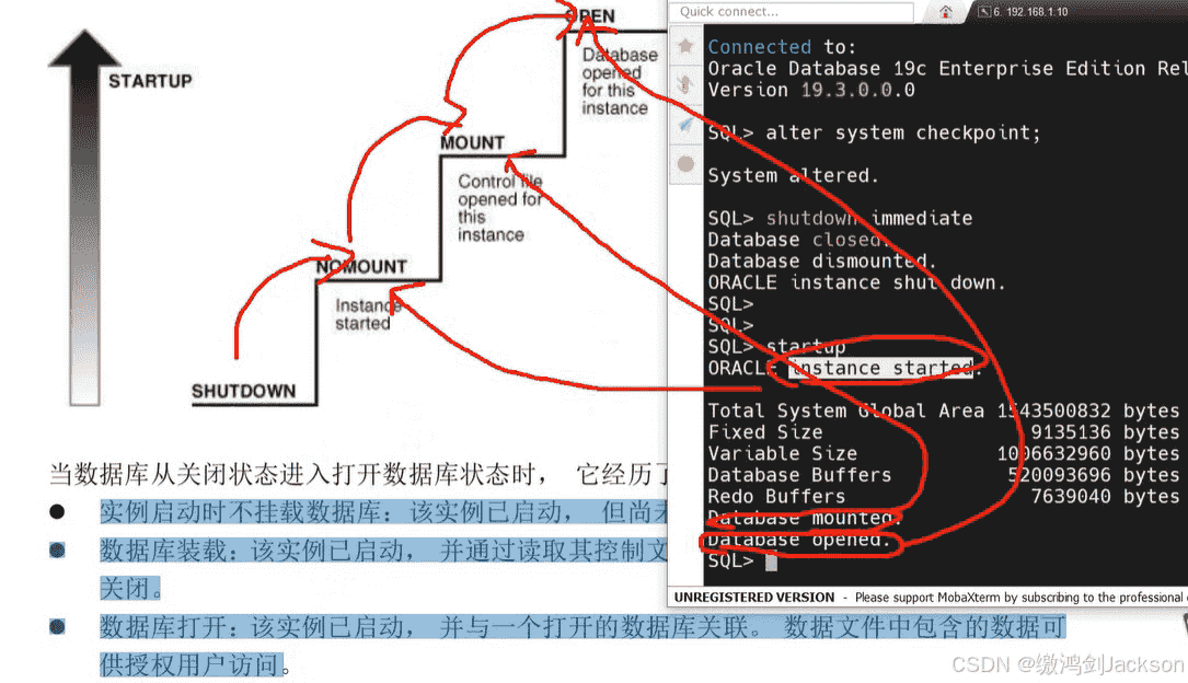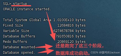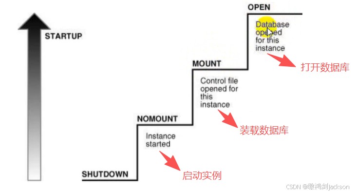 上图就完全对应下图的三个阶段:启动实例、挂载数据库、打开数据库。
