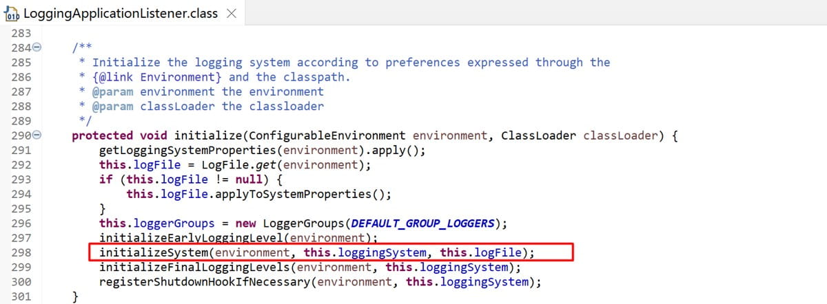 在onapplicationenvironmentpreparedevent中获取到loggingsystem实例后,就会调用initialize方法: