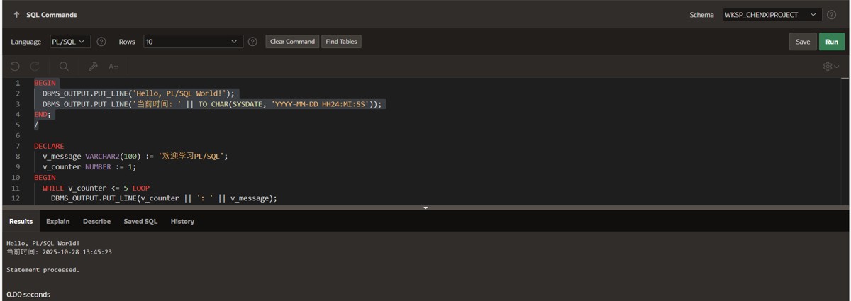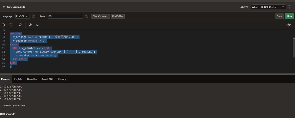 oracle apex - sql workshop - sql commands第一个pl/sql程序