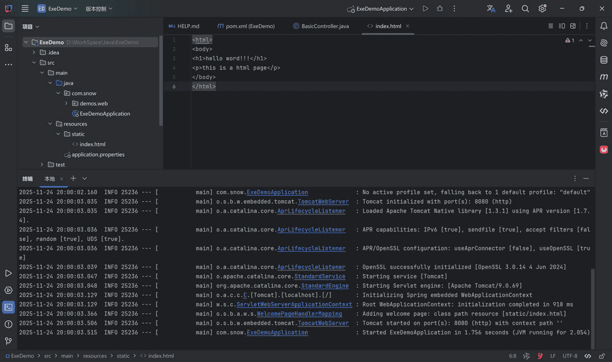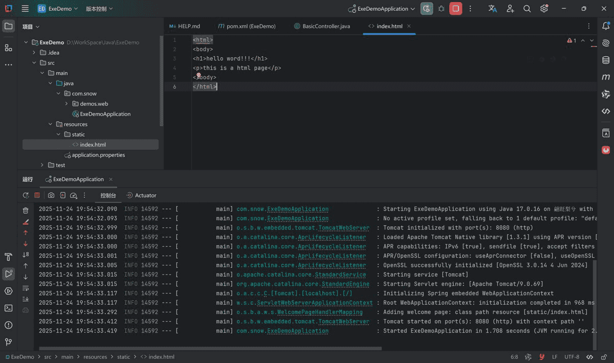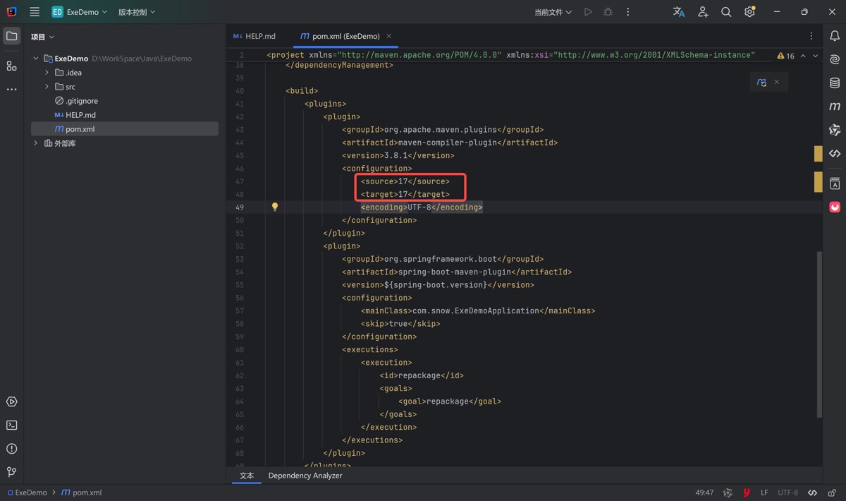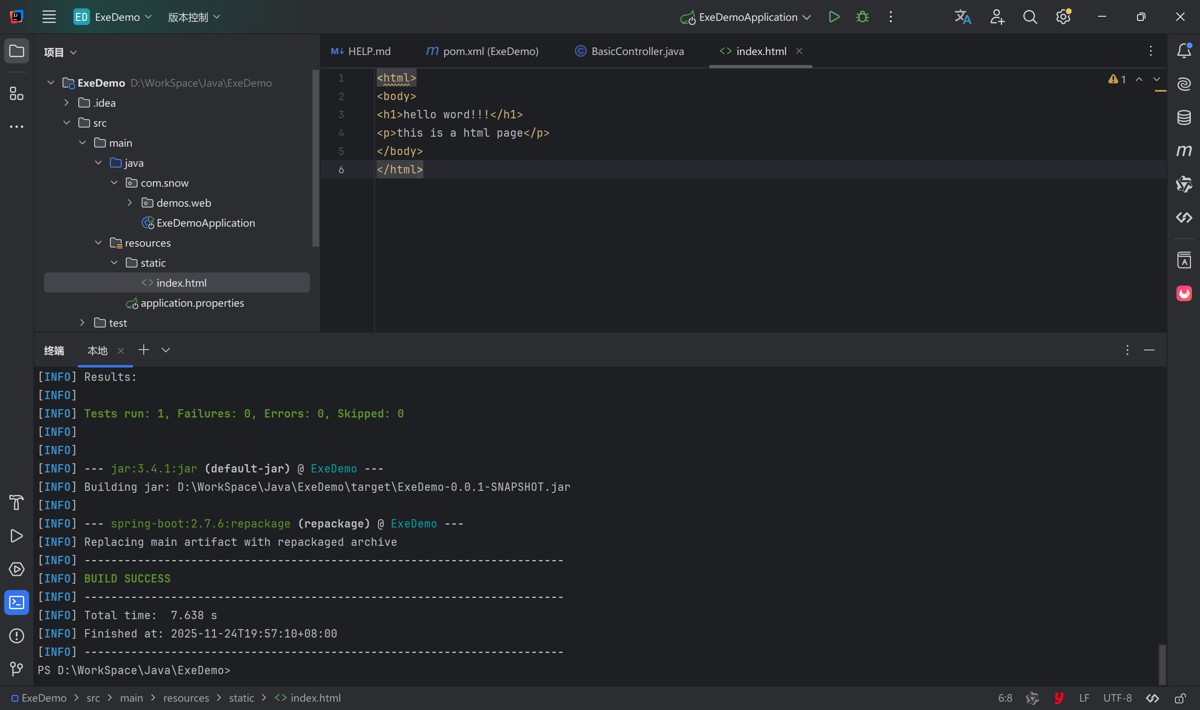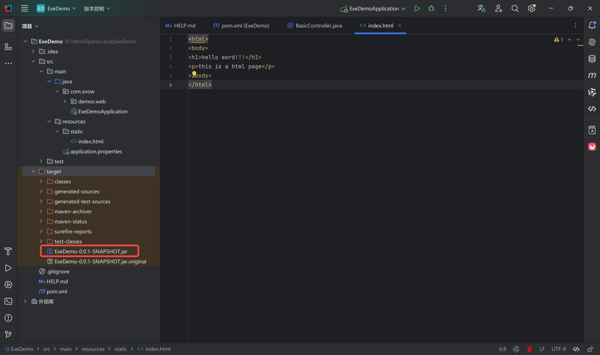 例如我输入的是:java -jar target/exedemo-0.0.1-snapshot.jar