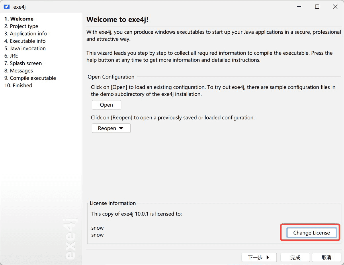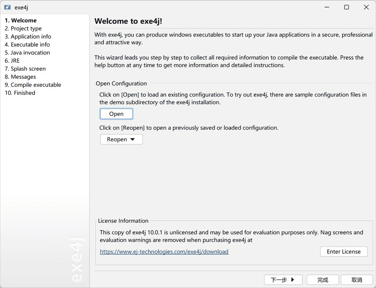 现在看到的是 exe4j 的欢迎界面,点下一步