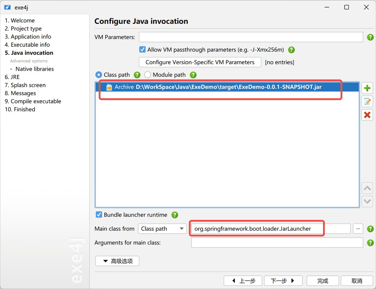 这一步的作用是让 exe4j 知道你的 java 程序代码和依赖在哪里。
