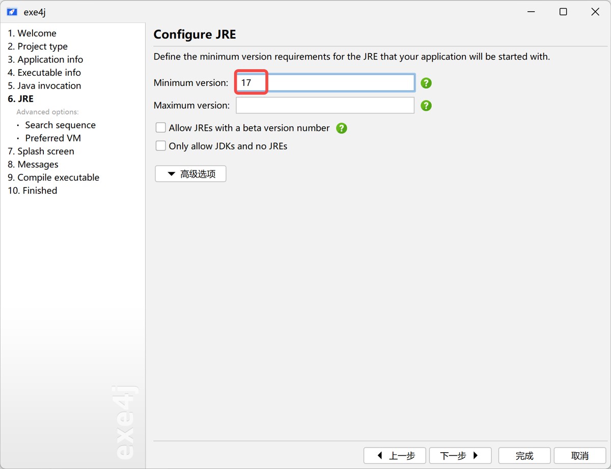 「allow jres with a beta version number」:不勾选,避免测试版 jre 带来的不稳定。