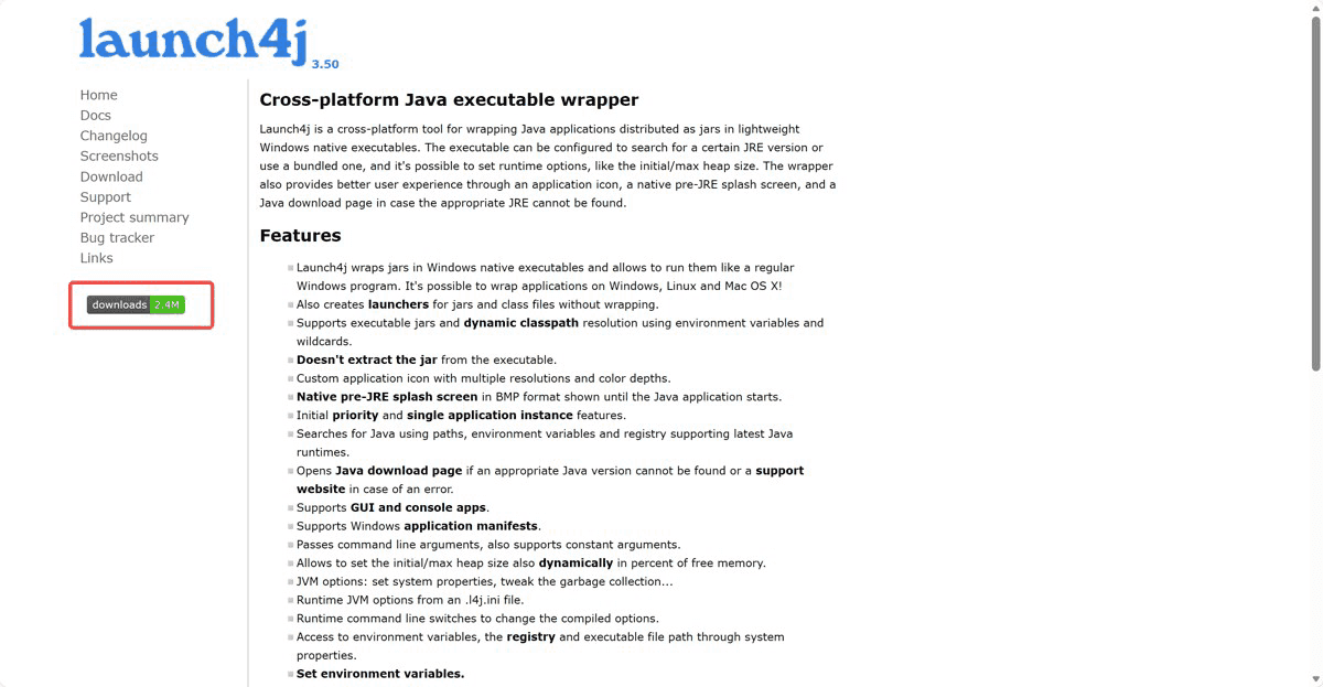 exe4j是一个帮助你集成java应用程序到windows操作环境的java可执行文件生成工具,无论这些应用是用于服务器,还是图形用户界面(gui)或命令行的应用程序。