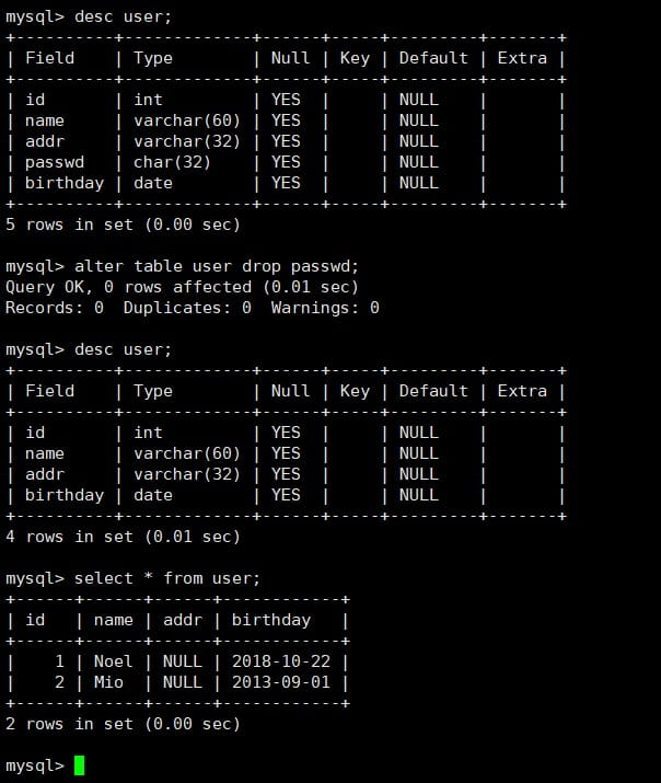 5.删除表
