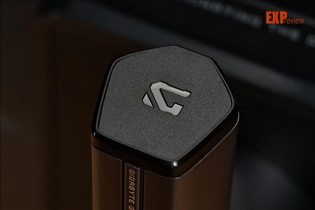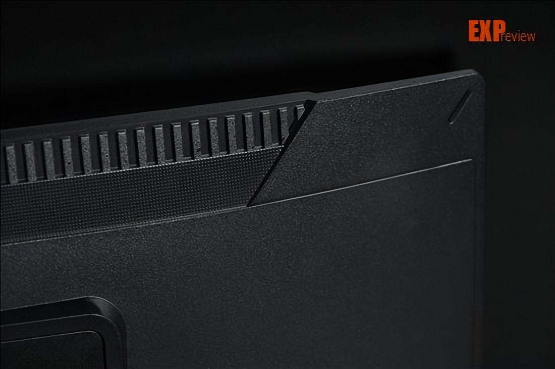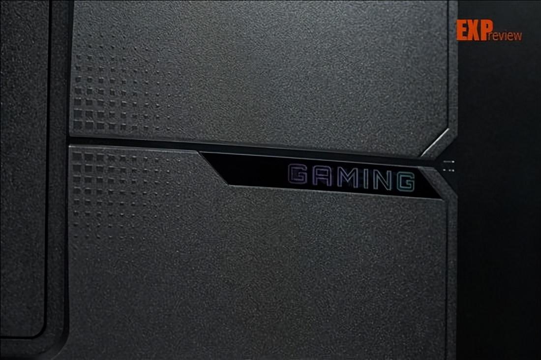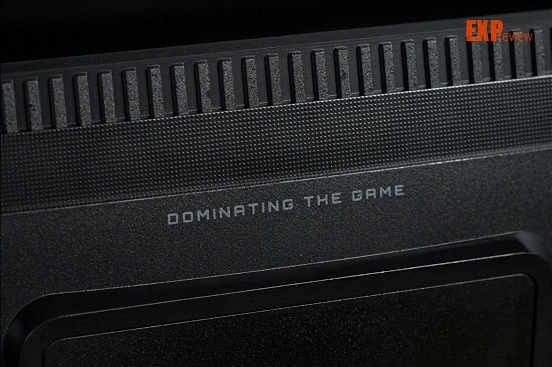 我们还是先回到背部,讲讲这一块凸起的区域。技嘉go27q24g在这个区域的设计风格跟gaming显卡是一致的,最右侧的镭射组件表明了它的身份:在不同的角度看的话,里面的图案会在技嘉logo和gaming之间变换。实际上,单看这个组件的形状,你会发现它和gaming显卡的可滑动侧板长得差不多。最顶上的slogan是“dominating the game”(制霸游戏),在gaming显卡的导风罩底部也可以找到。