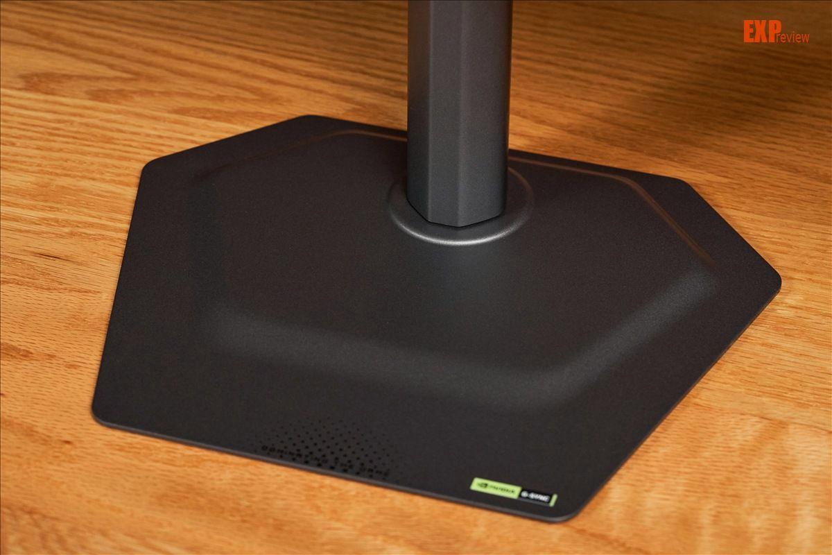 技嘉go27q24g的支架是另一个我比较喜欢的组件。它非常简洁,支架臂就是一根金属棱柱,底座不仅面积小,还超薄,只有2mm厚。总的来说,这个支架是一个尽量隐身,节省桌面空间的设计,虽说技嘉go27q24g是为游戏设计的显示器,但这种设计放在工作室里也可以无缝融入环境。