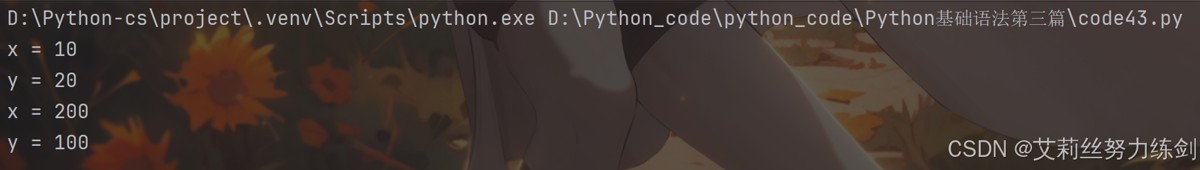 test(y=100, x=200)运行结果如下所示——