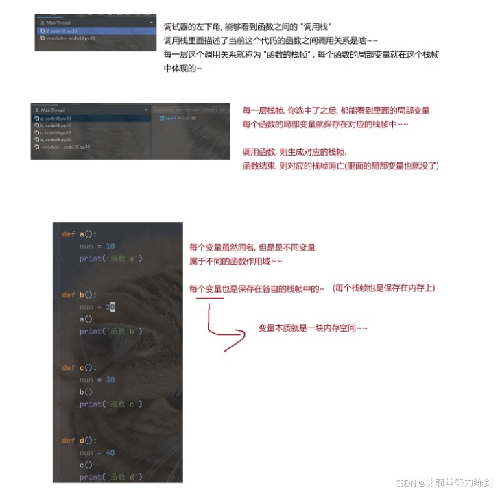 # 函数部分小结 # 函数的定义 # 函数的调用 # 函数的参数传递过程 # 函数的执行流程: # (1)进去,好进 # (2)出来,不好出
