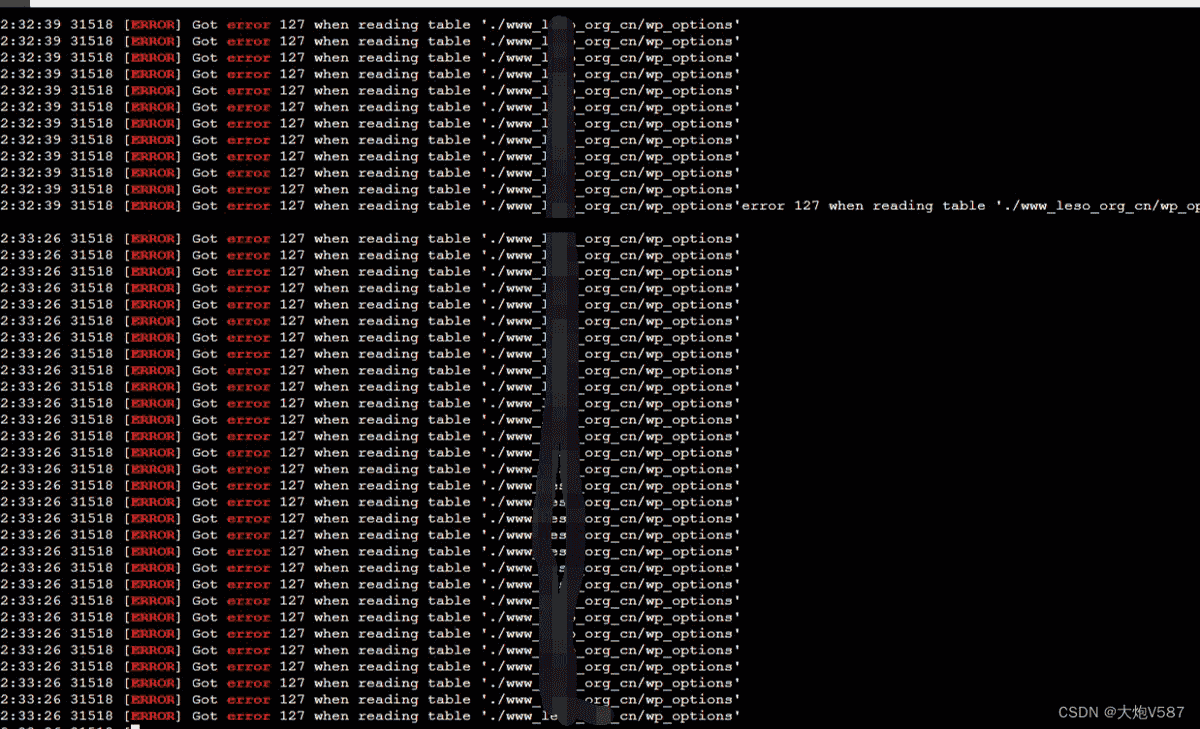 - 数据库在读取、写入数据的时候引起数据库文件损坏导致数据库表错误