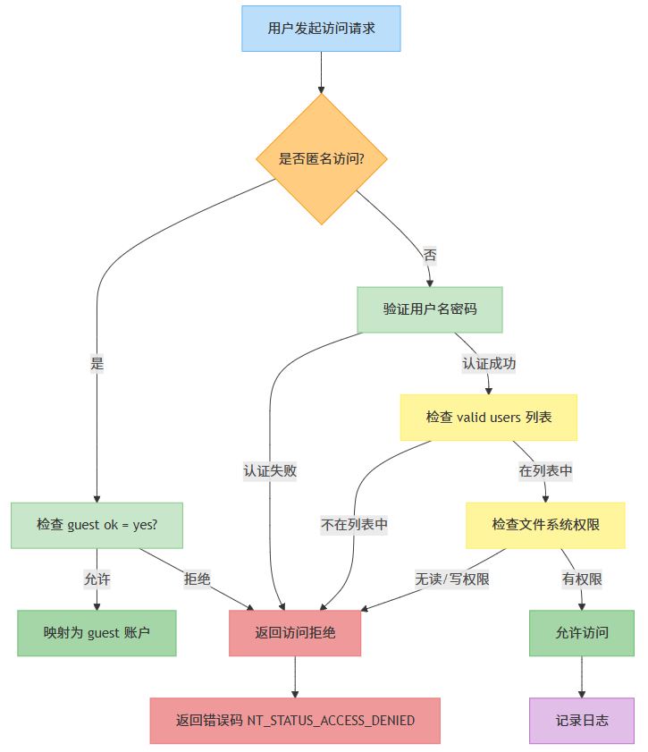 samba 密码独立于系统密码,即使系统用户无登录 shell,也可正常使用 samba。