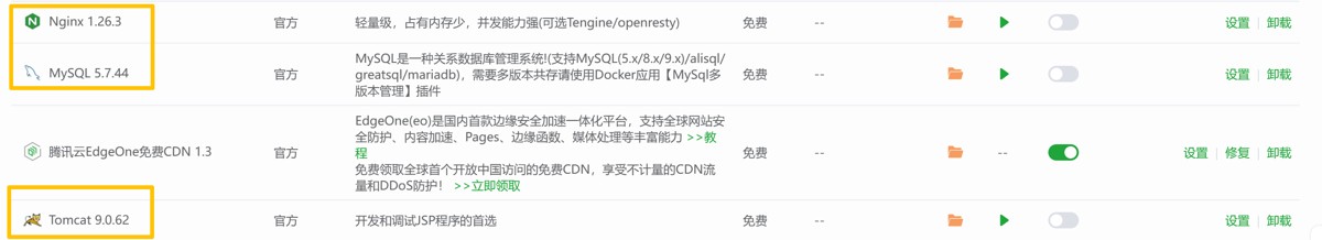 - 在宝塔面板左下的 软件商店 搜索安装: