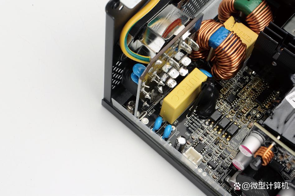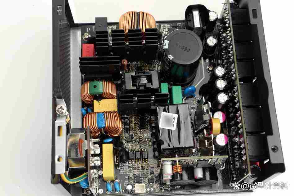 作为一款基于atx 3.1设计的电源,超频三战锤kn850的内部用料和电路设计是怎样的呢?我们拆开电源外壳后,其内部结构设计和用料呈现在眼前—主动式pfc+llc谐振+dc to dc的架构方案,该方案经过多年市场验证,在能量转换效率、电压稳定性及可靠性方面均表现出色。