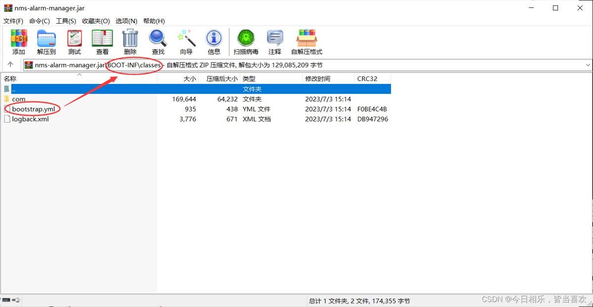 项目被打成jar包后,配置文件会被放在boot-inf的classes目录下: