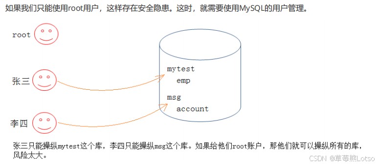 drop database会直接导致全库数据丢失; - 多业务、多人员共用 root 账号,无法做权限隔离和操作审计;