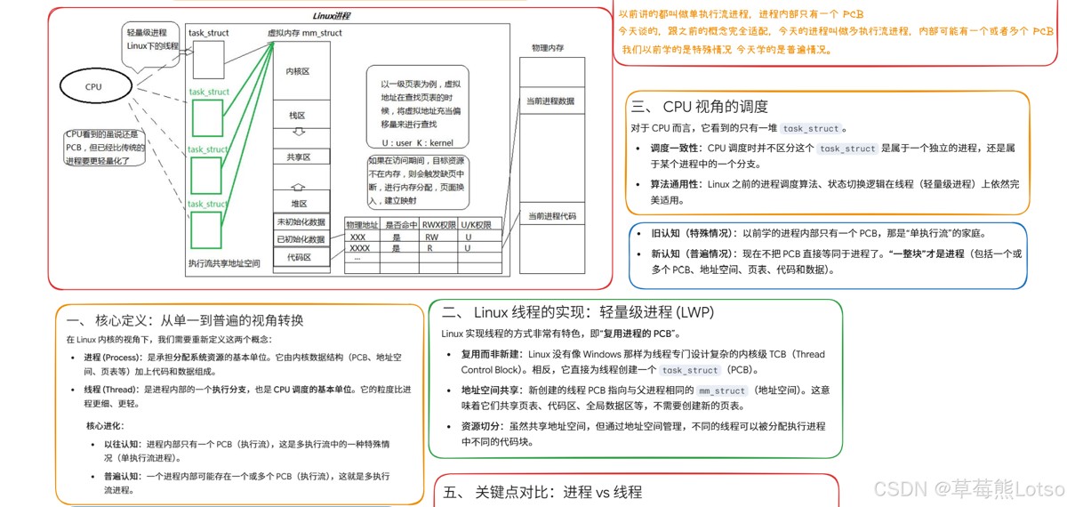 结语:线程是 linux 并发编程的核心基石,理解其内核本质、与进程的核心区别、优缺点和适用场景,是后续掌握线程控制、同步互斥、线程安全的关键。希望这篇博客能帮你吃透线程的基础概念,后续我也会继续分享线程控制、地址空间布局等进阶内容,欢迎点赞收藏,一起交流学习~