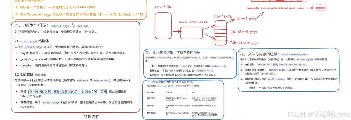 内存开销计算:struct page 约占 40 字节。4gb 内存共 1048576 个 page:总消耗 = 1048576 * 40b ≈ 40mb。相对于 4gb 内存可以忽略。