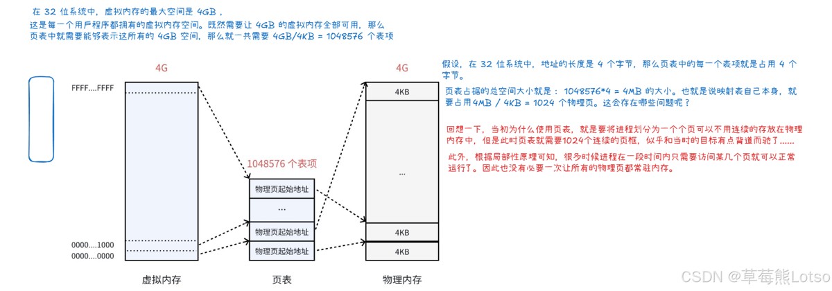 以 4gb 物理内存、4kb 页框为例:总页数 = 4gb / 4kb = 1048576 个页框。