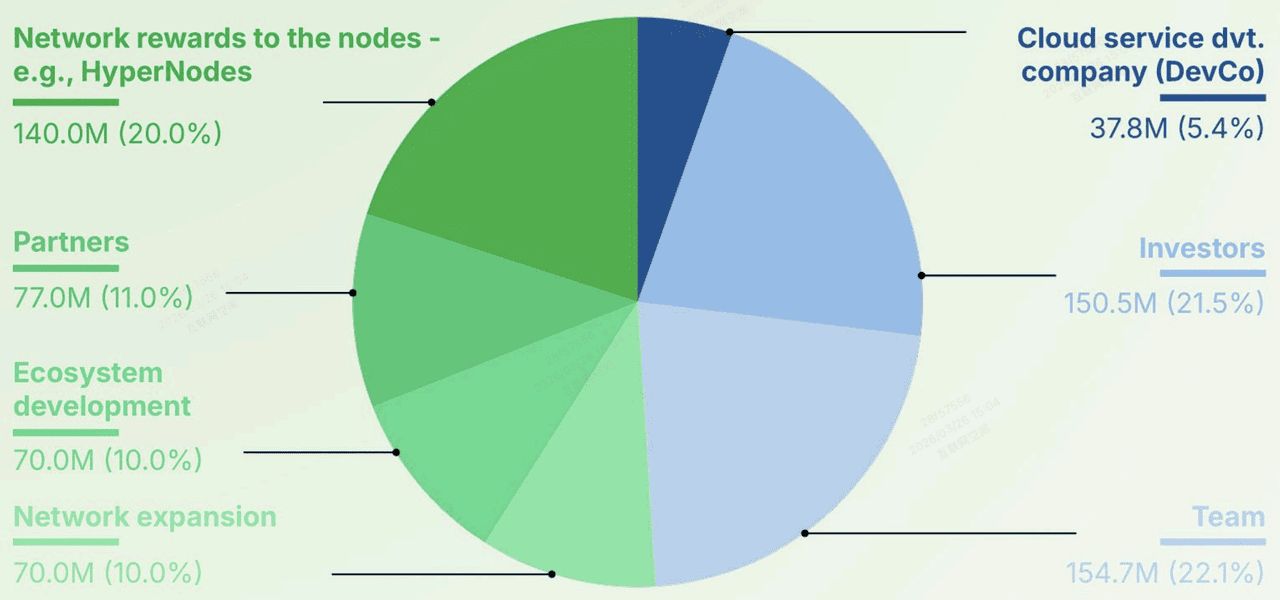 - 奖励储备 (10.0%): 在 tge 完全解锁,为硬件供应商提供即时容量和利用激励。
