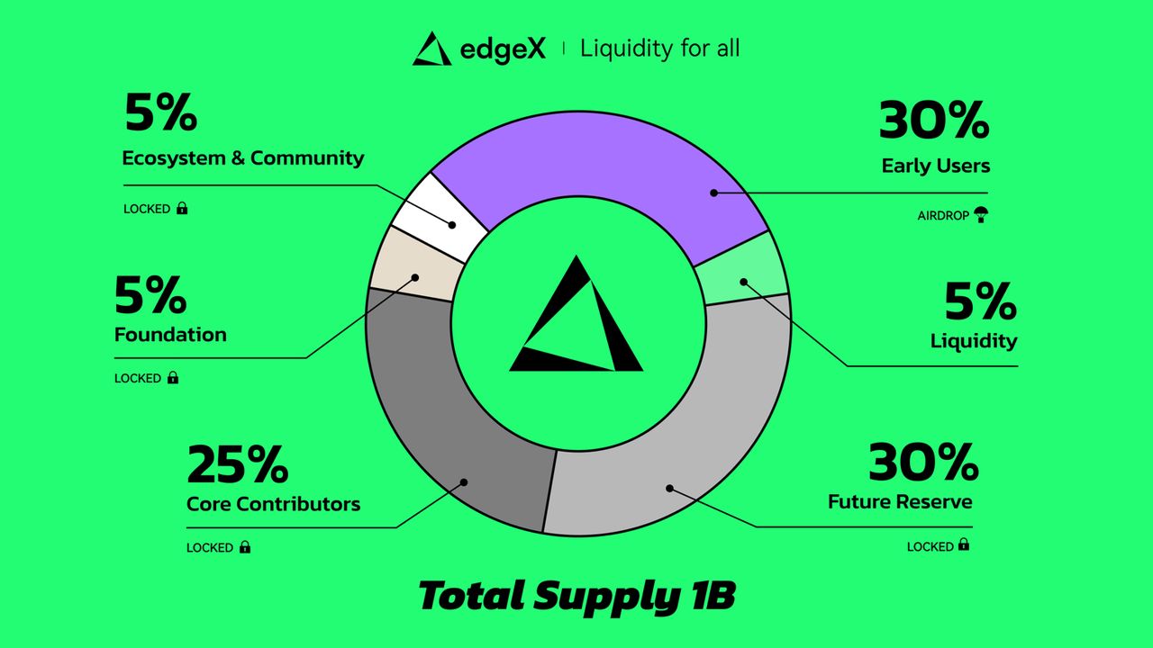 $edge 代币的总供应量硬上限为 1,000,000,000 (10 亿) 枚。其分配模型严重偏向社群,初始流通供应量几乎完全由早期用户和活跃交易者组成。