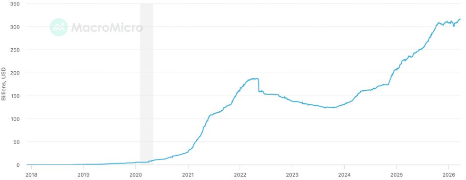 - 稳定币市值创新高,达到3200亿美元,月度交易量创下1.8万亿美元历史纪录。