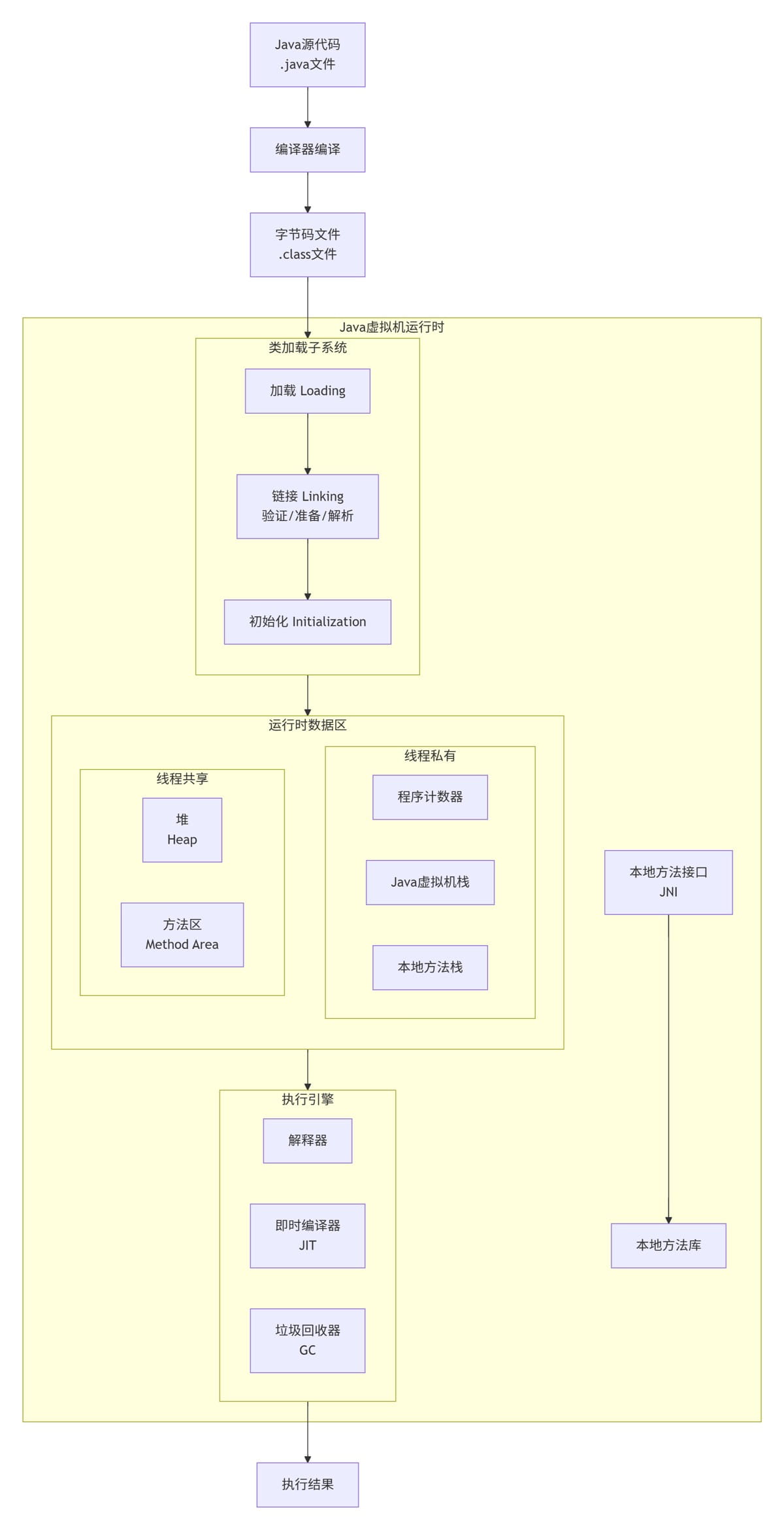 .java 源文件 ↓ 编译 .class 字节码文件 ↓ classloader 内存中的 class 对象(java.lang.class)
