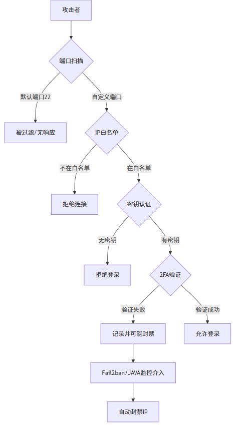 ssh 是我们管理 linux 服务器的生命线,保护它就是保护我们的数字资产。通过本文介绍的十种方法 —— 从简单改端口,到编写 java 自动防御程序 —— 你可以根据自身需求构建一套坚固、灵活、智能的防御体系。
