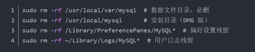 macos:确认 /usr/local/var/mysql、/applications/mysql 已删除。