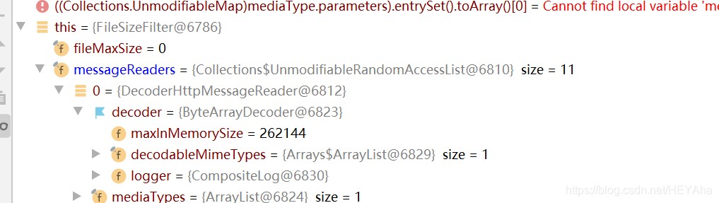 max-in-memory-size: 100mb但是以上代码在spring2.x.x版本中不生效,官方说解决了,估计是在后面版本解决了,但是项目都上生产了肯定不可能现在来换版本,所以只有另想办法,在他启动中debug发现在初始化代码时已经设置为262144了: