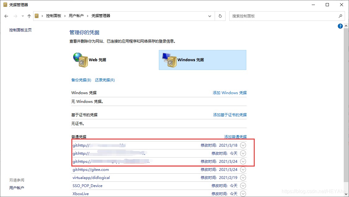 直接在控制面板-用户账户-管理用户凭证中更改就可以,