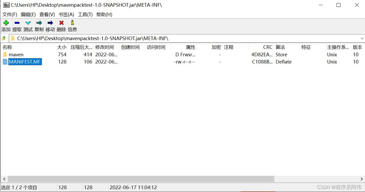 可以看到manifest中已经生成了jar的存放路径和启动类的路径