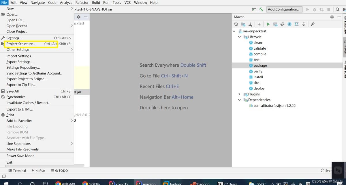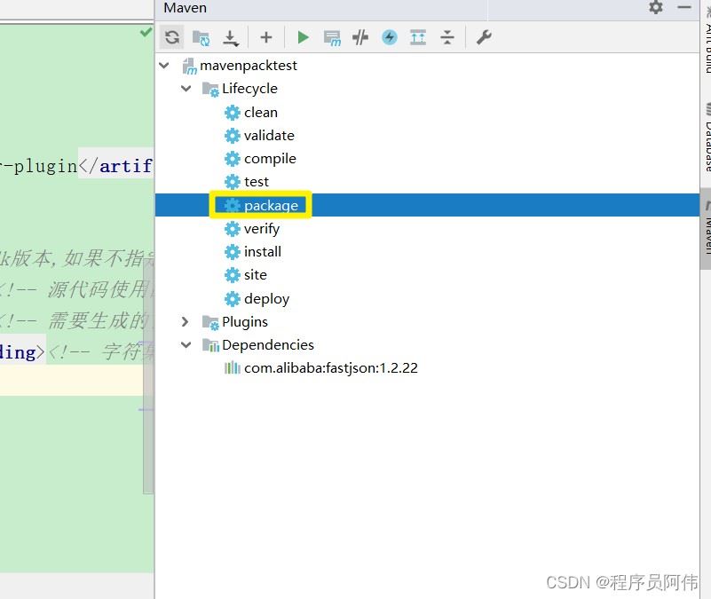 首先使用idea中自带的maven工具打包,idea的maven工具也能打大包和小包。