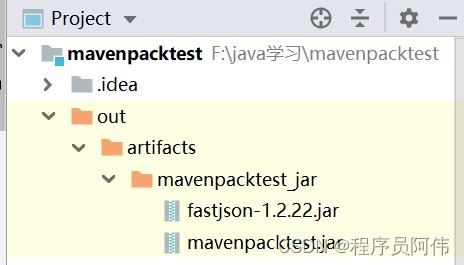 可以看到生成了out输出文件夹,并且引入的依赖也一同被打包到同个目录下了,但是还是没有合并成同一个jar,如果要运行的话,必须将依赖的jar放在同一个目录中才能正常运行。