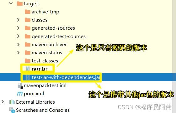 明显可以看到test-jar-with-dependencies.jar才是我们需要的。
