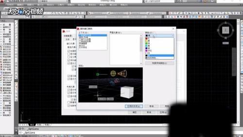 然后点击选项卡中的显示按钮,单击颜色,弹出图形窗口颜色对话框