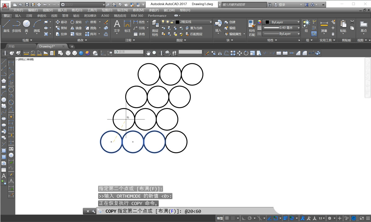 然后,再使用copy命令,选择前三个圆形,输入字母a、输入阵列数目为4,然后点击@键输入基点偏移坐标。