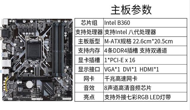 主板: 技嘉b360m-ds3h ¥0 主板套装包含