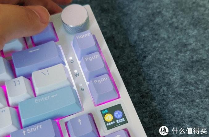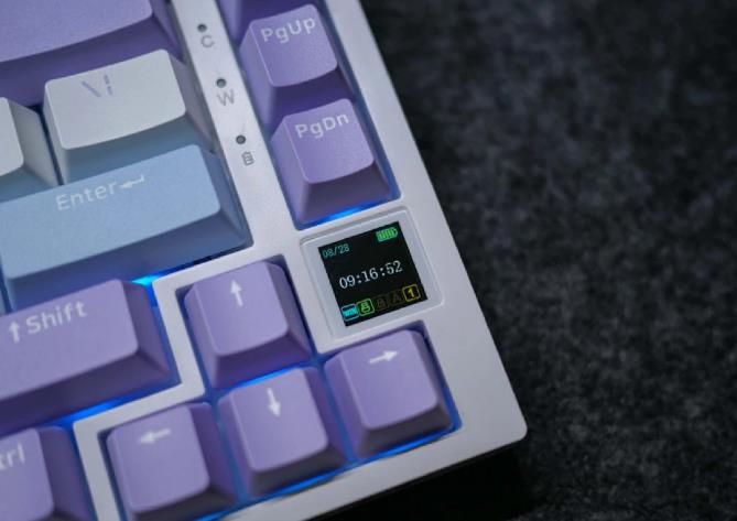 相比起普通版,pro版配有一块0.85寸的tft彩色屏幕,屏幕虽然不大,但是功能齐全,可以显示当前时间、连接方式、键盘电量等信息,在使用旋钮键调节设置的时候,还可以显示设置菜单选项,而且黑爵还提供了专属的驱动软件,用户可以通过驱动软件设置个性化gif图像。