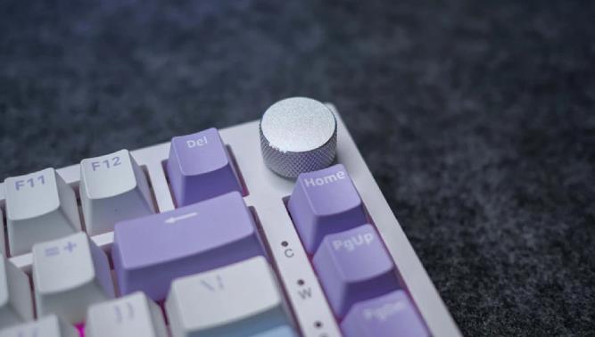 ak820键盘全系配有金属旋钮,铝合金材质手感不错,默认设置可以快速调节电脑音量,使用fn组合键则可以调整rgb灯效设置等。