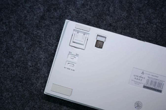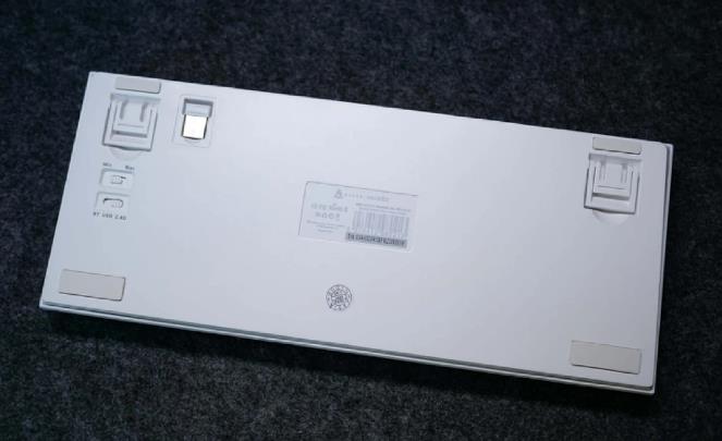 ak820 pro的其他按钮则全部放到了键盘底部,有接收器收纳仓、以及两个拨动式开关,上面是win/mac系统切换键,下面三模切换键。相比起其他版本的ak820仅支持有线单模,pro版支持蓝牙/2.4g/有线三模连接,仅凭这一点,199的pro版更值得入手。