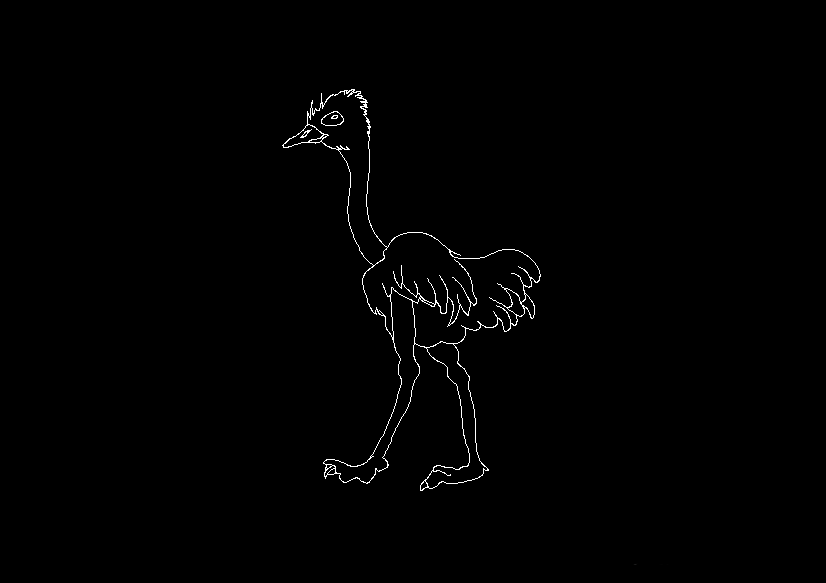 再使用样条线画出鸵鸟的两条腿,并再画出鸵鸟的爪子,这样我们就将鸵鸟画好了,如图所示: