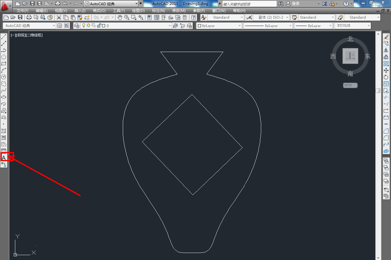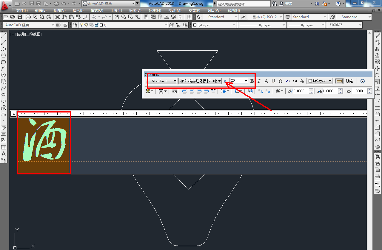 点击【矩形工具】,在图示区域绘制一个矩形图案后,点击【文字工具】并设置好文字的字体和大小参数,完成酒字的制作即可。以上就是关于cad酒坛平面图制作方法的所有介绍。