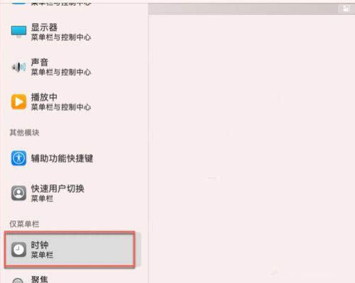 3、在程序坞与菜单栏界面,点击时钟进入。