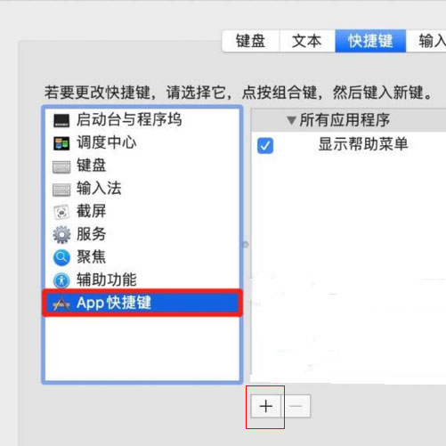 进入快捷键界面,选中app快捷键点击+按钮进入。